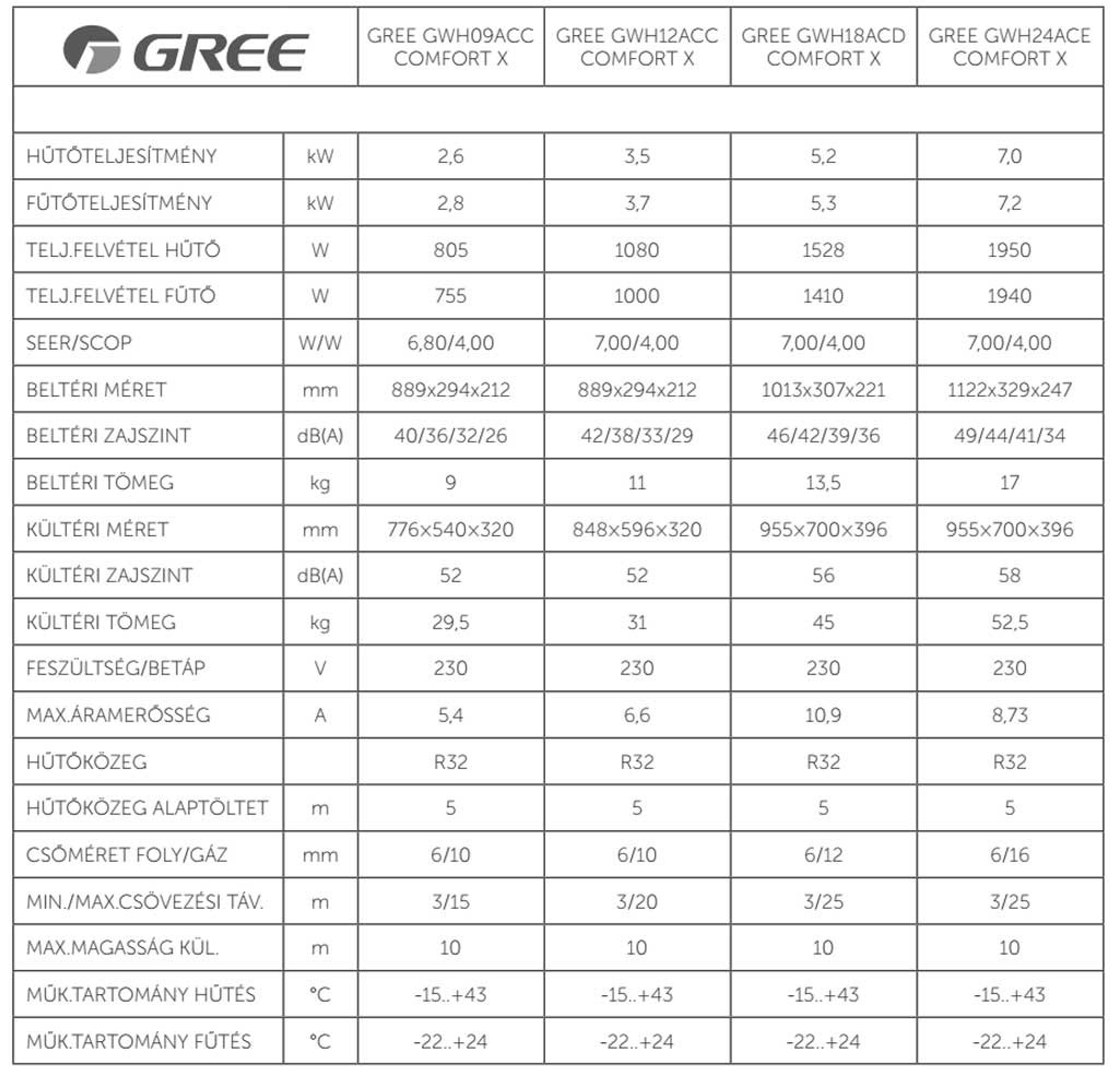 A Gree GWH12ACC-K6DNA1F Dark X Inverteres Split klíma fontos tulajdonságai:
